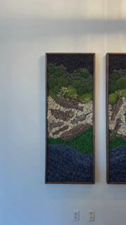 Bring the serenity of nature indoors with this one-of-a-kind moss wall art triptych, hand-crafted by The Botaness. Featuring preserved moss, natural bark, and lush greenery arranged in three vertical panels, this artwork captures the textures and layers of forests, rivers, and mountains.