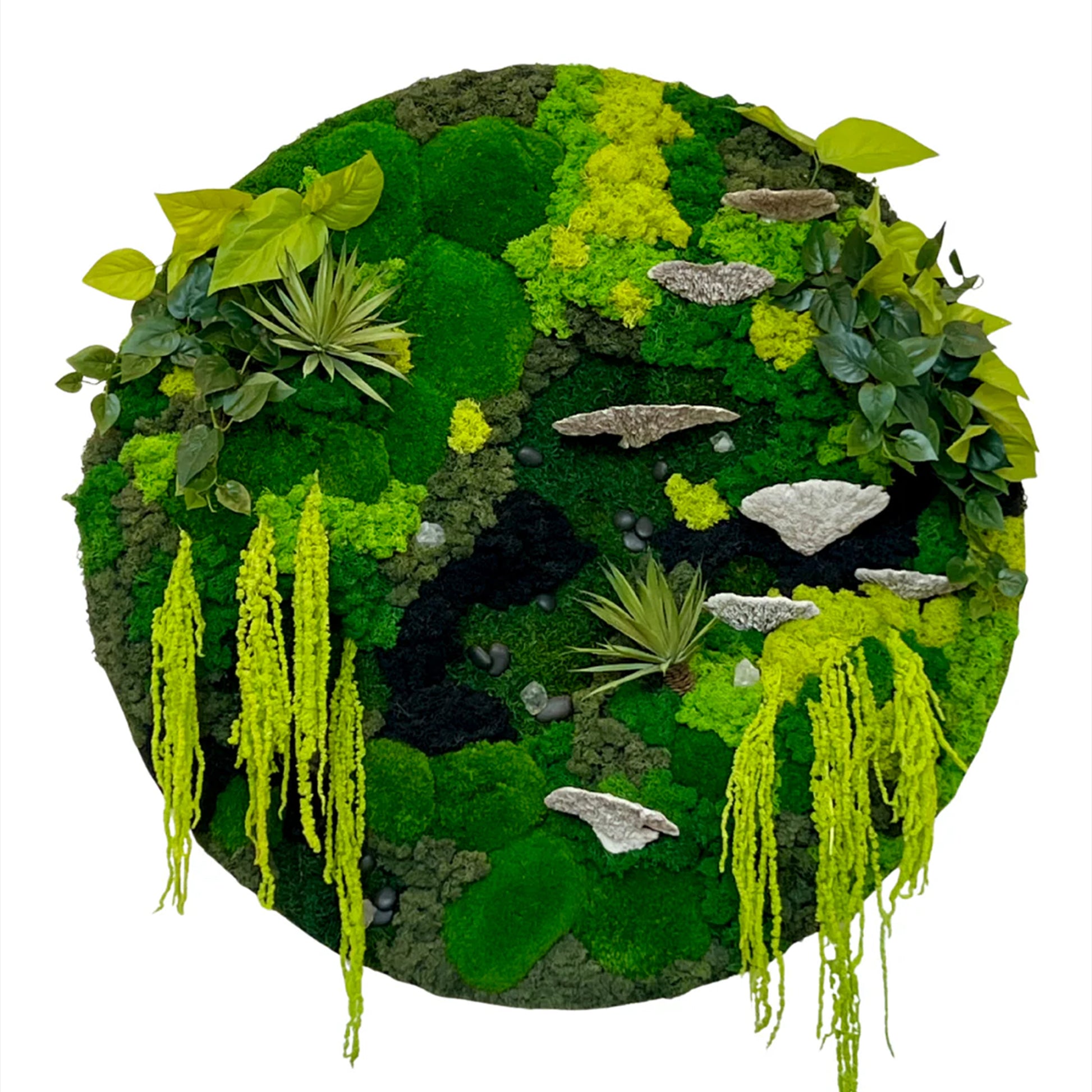 Perfect as a statement piece for modern interiors, wellness studios, luxury residences, and corporate offices, this biophilic design element brings grounding energy and natural beauty to any room. Each detail—from the rich emerald tones to the organic textures—creates a sense of tranquility and connection to nature.